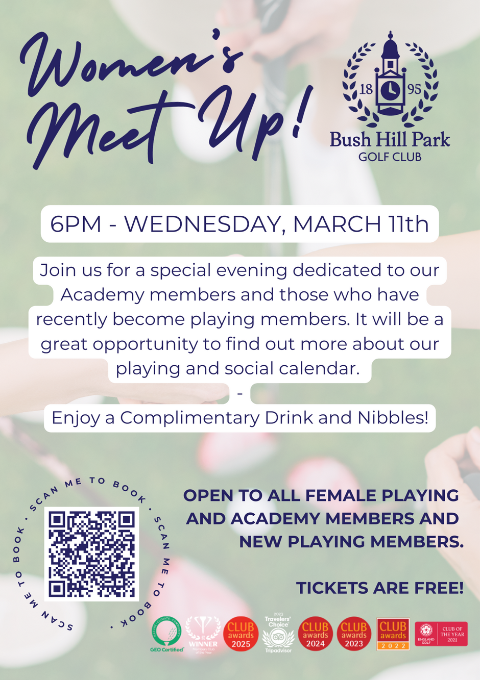 Wednesday 11th March Welcome Open evening for all women members to meet socially so PLEASE book your tickets on IG.