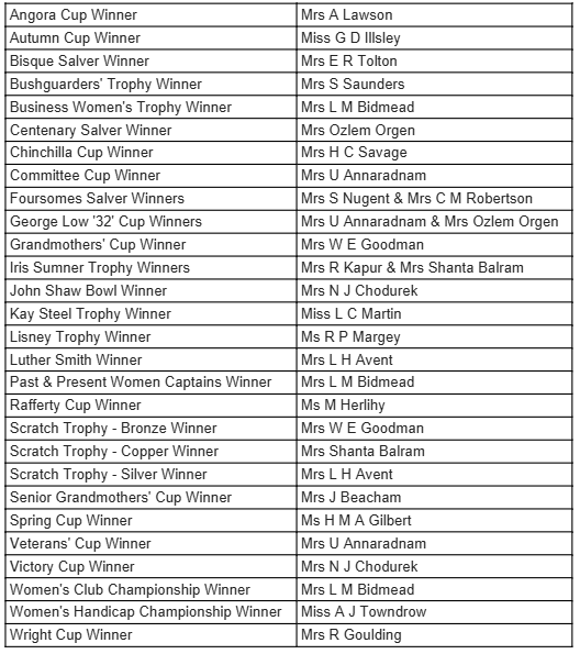It was a beautiful, sunny, and frosty start for our End of Season Alliance. This was a fun competition played in teams of three. Once we were thawed and changed, we had a delicious lunch of salmon en croûte thanks to Roy. Sonia and Sandra very deftly managed to look after 35 women by themselves, which was greatly appreciated.