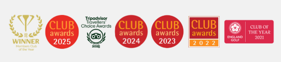 Our recent accolades include being named Golf Club of the Year at the England Golf Awards in 2021, ranking 4th in the county by The Top 100 Golf Courses of the World, winning the Golf Club of the Year award at the Club Mirror Awards in 2019, 2022, 2023, 2024, and 2025, and receiving our eighth Tripadvisor Travellers' Choice Award in 2025.
